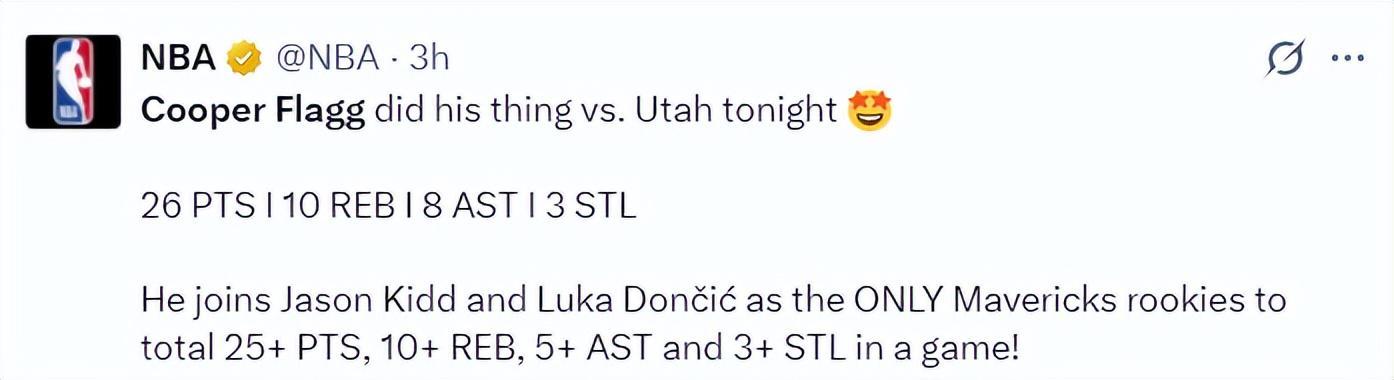 2.他成为基德、东契奇后独行侠队史第三位25+10+5+3抢断的新秀;