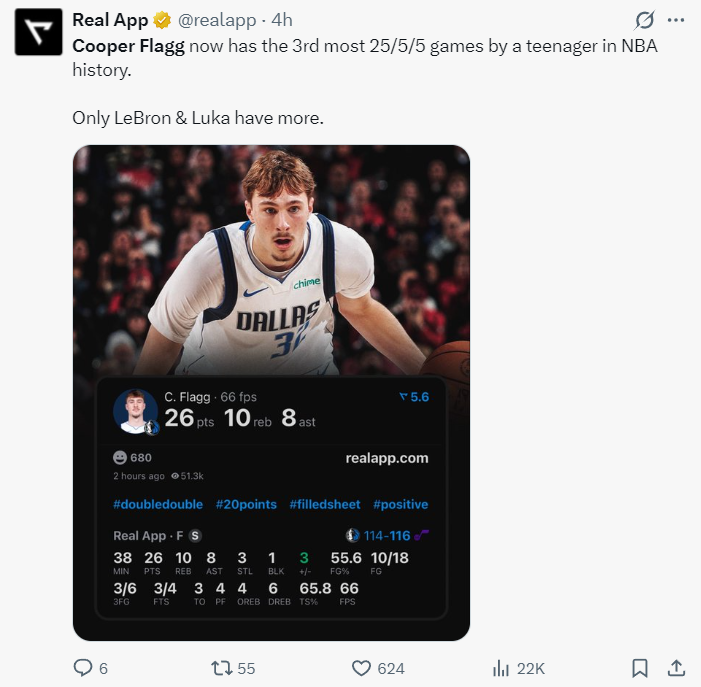 5.弗拉格拿到26+10+8+3抢断+3三分,成为NBA历史基德后首位能单场达成这样数据的球员;