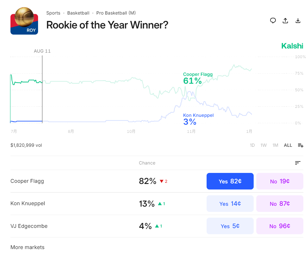 弗拉格依旧是2025届最出色的那个,他目前的最佳新秀概率高达82%是断崖第一的存在,黄蜂的克努佩尔只有13%。