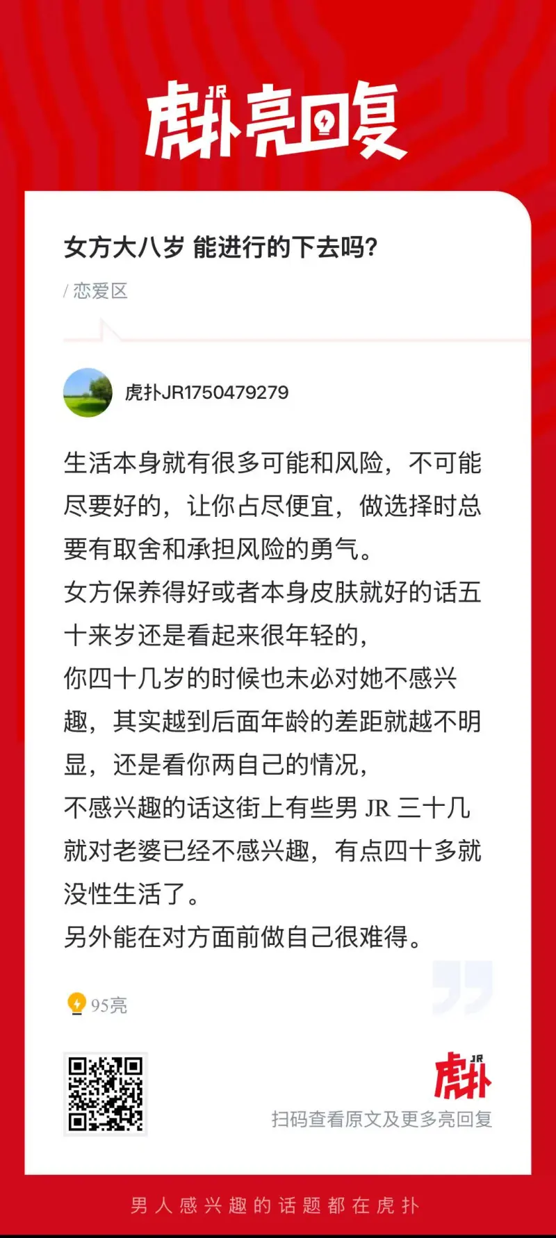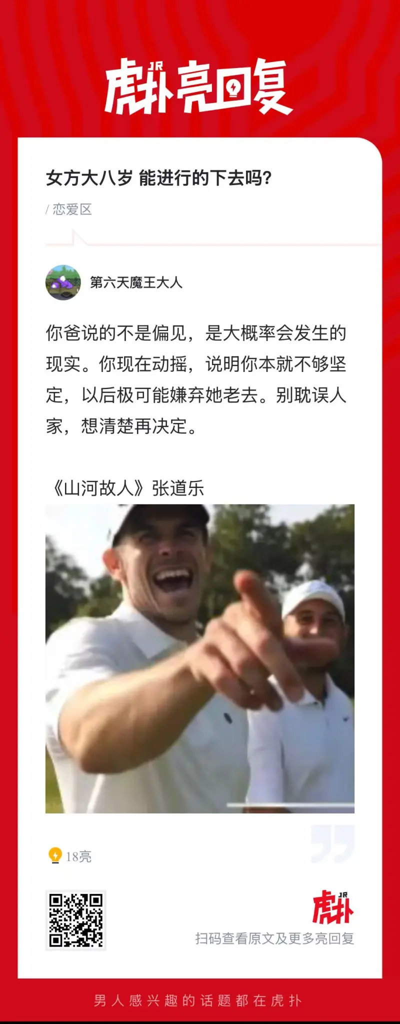 家里极力反对,楼主父亲说了一句极其扎心的话: “你34岁可以搂着42岁的她,那你44岁的时候,还愿意搂着52岁的她吗?”