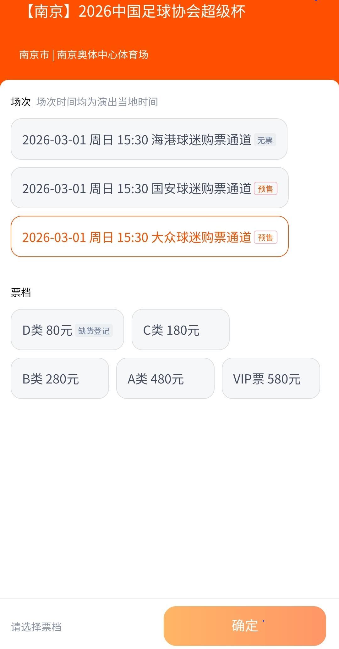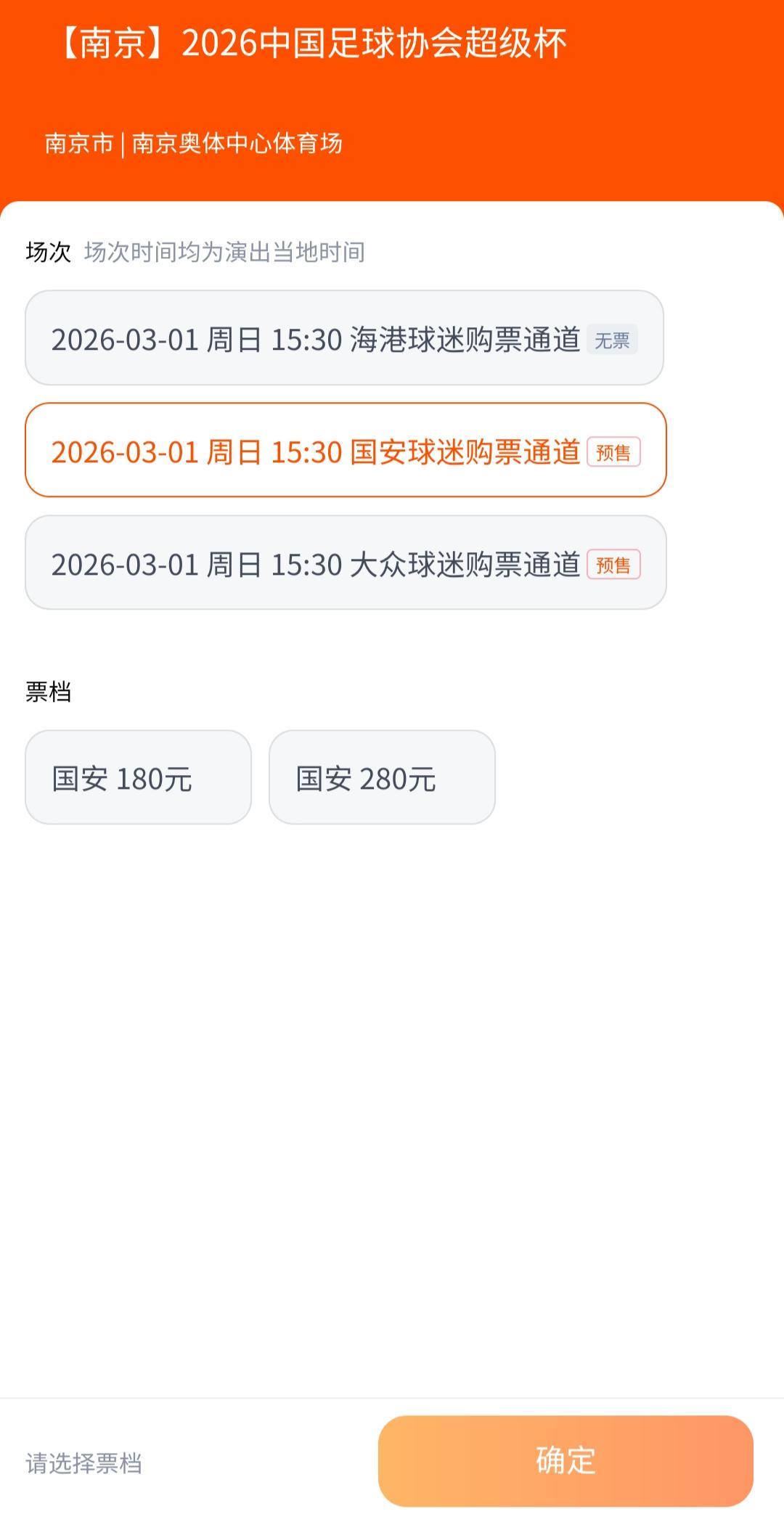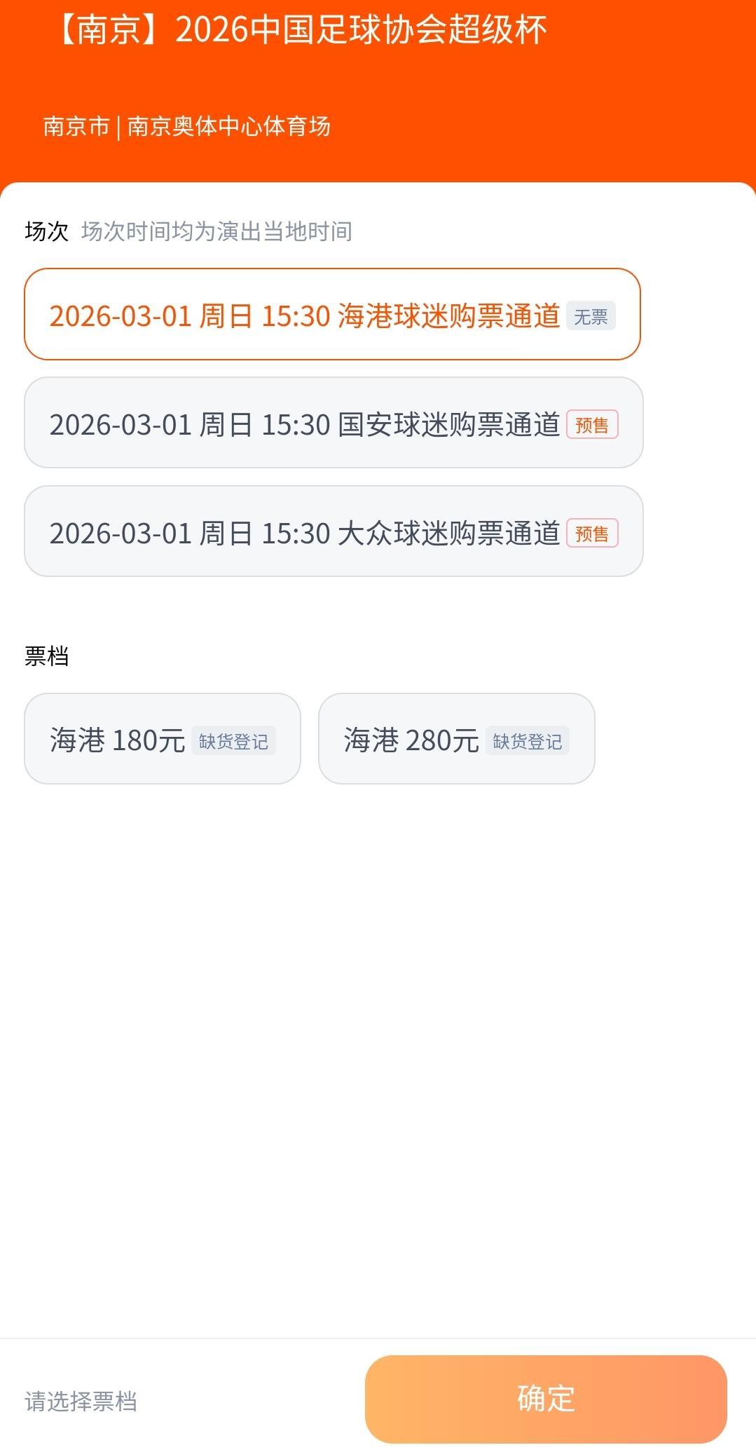 1月23日10:18,作为年度开篇大戏的2026中国超级杯球票正式开票。结果,名义主队上海海港的地缘优势明显,球票很快售罄;客队北京国安以及大众球迷的球票还在热销中。经过申办,南京奥体中心体育场承办此次超级杯赛事。根据赛程安排,3月1日(农历正月十三)15:30,2025赛季中超冠军上海海港将和足协杯冠军北京国安,在这里上演单场定胜负的巅峰对决,争夺超级杯。...