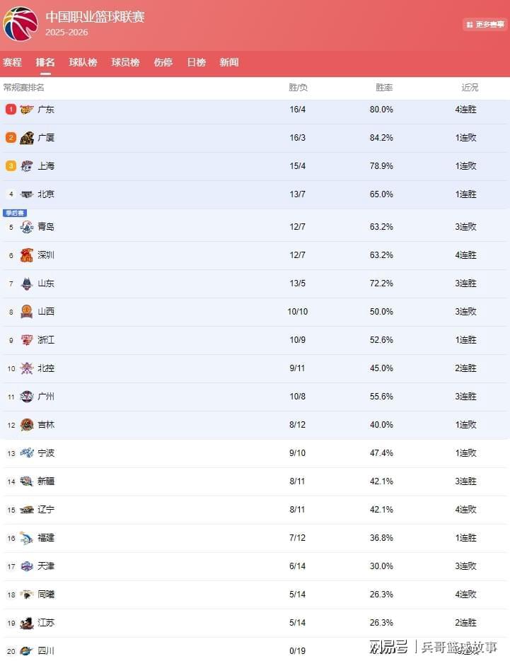 开云智能服务-CBA最新排名!差距仅1场,3队抢第1;山东冲前4,辽宁跌出季后赛